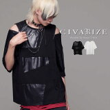 "CIVARIZE【シヴァーライズ】PUレザー切り替えパッチワークショルダーZIPTシャツ/全2色"【返品対象外商品】【あす楽対応】Tシャツ 半袖Tシャツ カットソー ファッション 服 メンズ レディース 黒 白 ブラック ホワイト ヴィジュアル系 V系 病み系 メンヘラ 地雷系 送料無料