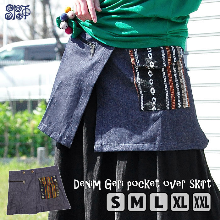 スカート エプロン レディース デニムゲリポケットオーバースカート ラップスカート 巻きスカート アジアン エスニック ■《アジアンファッション エスニックファッション カフェエプロン ショート 夏 フェス ラップスカート ミニ エスニック エプロン ethnic skirt ladies》
