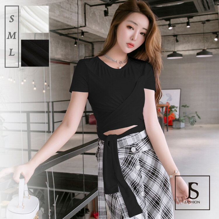 【アウトレット】カットソー トップス クロスデザイン ショート丈 半袖 ホワイト ブラック 2色 タイトトップス 大人カジュアル デイリーおしゃれ Sサイズ Mサイズ Lサイズ 大人可愛い 海 夏フェス イベント JSファッション【190709】【7月新作】