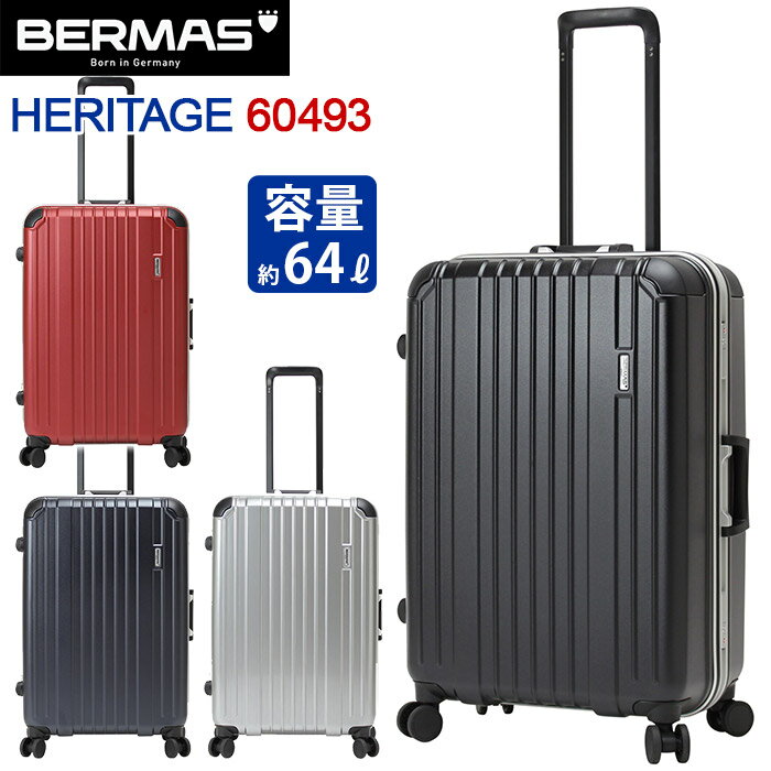 BERMAS バーマス 大型 スーツケース 64L heritage フレーム キャリーケース バッグ 5泊 長期 メンズ レディース コーナーパッド C面デザイン ストッパー TSA ダンパーハンドル 静音キャスター 底足 ハンガー 黒 ミニポーチ 旅行 出張 ビジネス