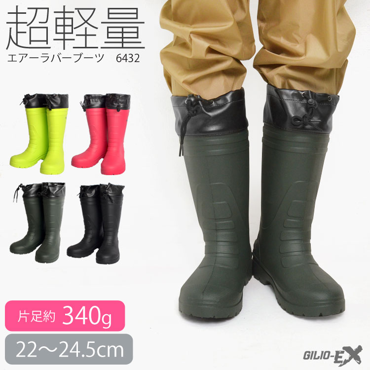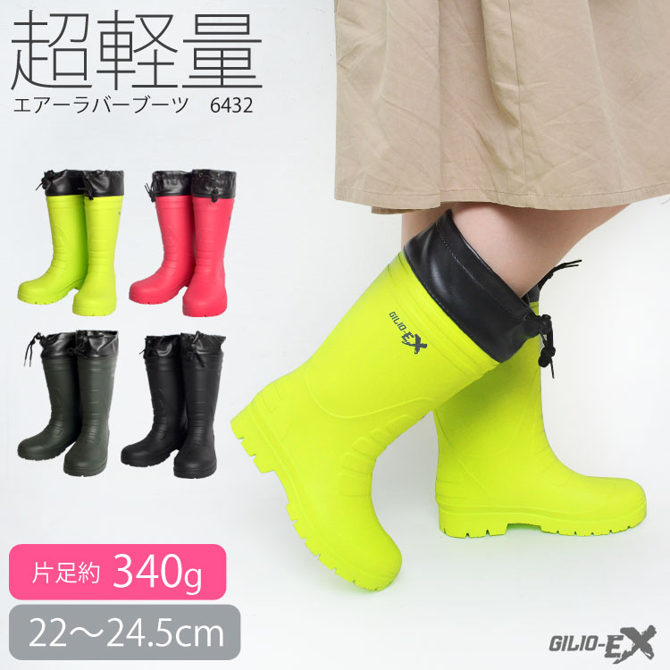 長靴 レディース ロング 農作業 軽量 超軽量 軽い 長靴 エアラバーブーツW ブーツ レインブーツ 防水 柔らかい 長ぐつ 雨 キャンプ ガーデニング アウトドア 通勤 通学 家庭菜園 履きやすい 黒 カーキ ピンク ライム 雨靴 メンズ GILIO-EX 6432