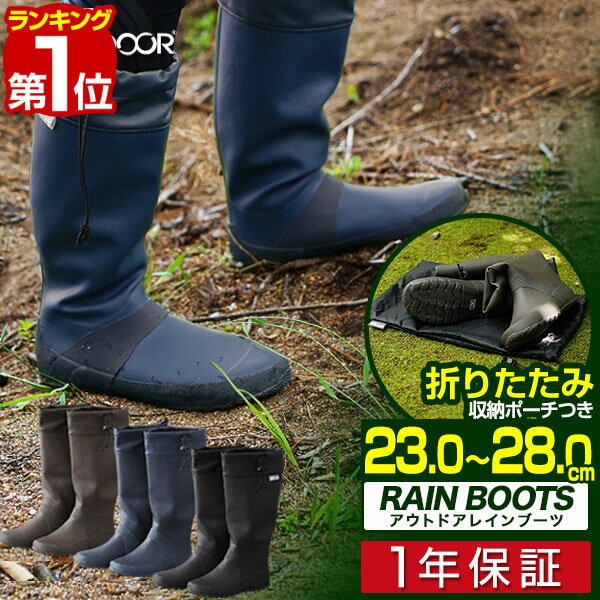 1年保証 長靴 レインブーツ レディース ロング 23-28cm 長くつ 靴 ラバーブーツ メンズ 大きいサイズ 雨 雨用 収納袋付き キャンプ フェス アウトドア ガーデニング 農作業 釣り フィッシング フィールドア 折りたたみ FIELDOOR ■[送料無料]