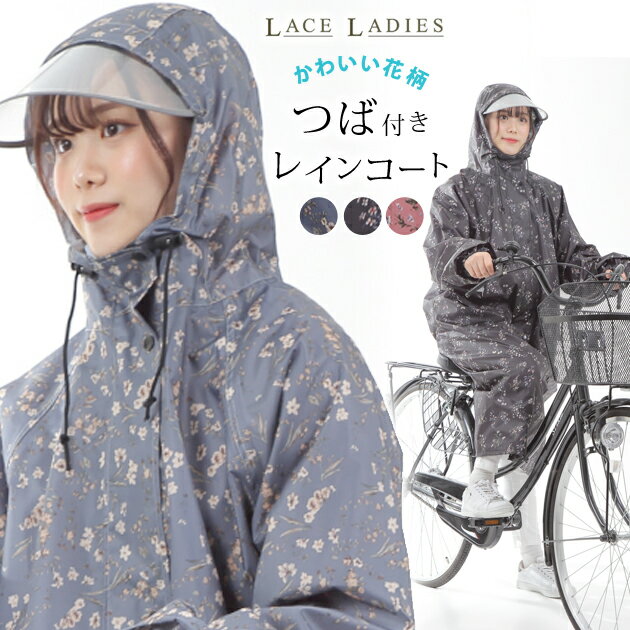 バイザー取り外し可 花柄 レインコート 軽量 自転車 袖付き レインポンチョ ポンチョ レインウェア 袖あり 雨合羽 カッパ おしゃれ ロング ブルー ブラック ピンク クリアバイザー ツバ付き 可愛い 小花柄
