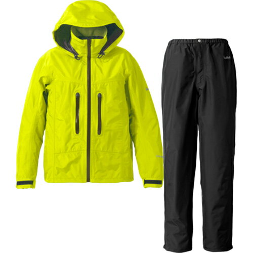 全身を上下とも雨からガードできるセットアップタイプのレインウェア。