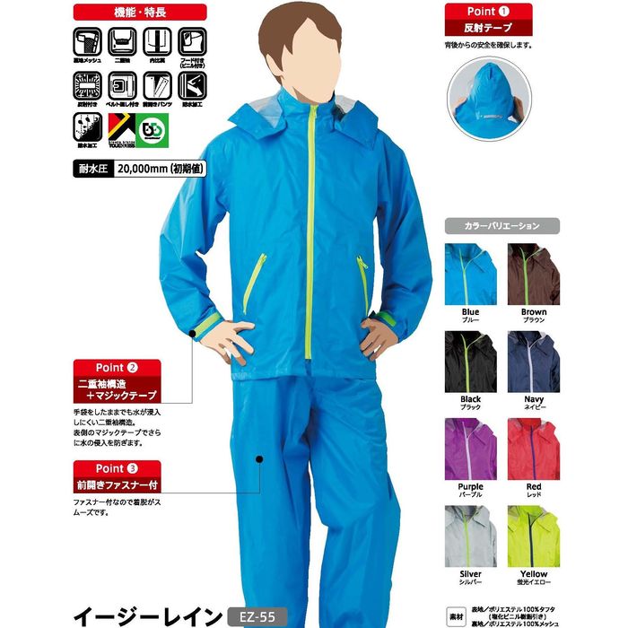 【 耐水圧20000mm 】 レインウエア コヤナギ イージーレイン 【 EZ-55 】 | レインコート 合羽 カッパ レディース メンズ 上下 作業 現場 自転車 通勤 通学 ムレにくい 梅雨 雨 台風 登山 ハイキング アウトドア